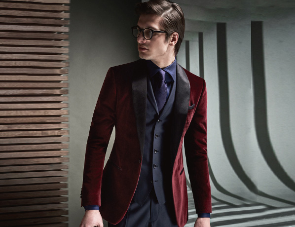 酒紅色天鵝絨單排扣禮服套裝