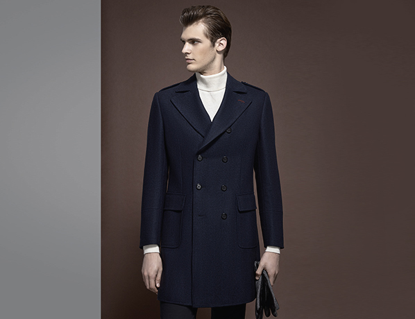 藏藍色素色雙排扣大衣