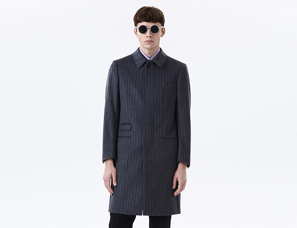 灰色豎條紋純羊毛輕便大衣