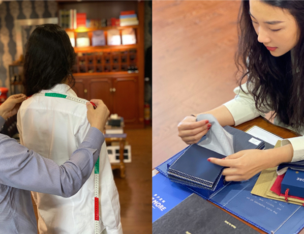 Less More精品店的資深量體師為您量體及試衣,定制更合身合體