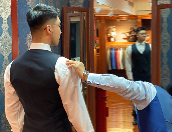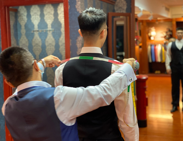 Less More精品店的資深量體師為您量體及試衣,定制更合身合體